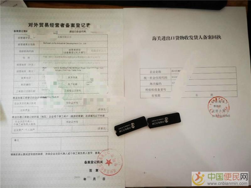 2019年办理四川成都进出口权申请材料:c n b i a n m i n c o m