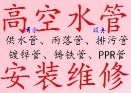 9、专业外墙高空各类水管安装维修如 PPR管、PVC管、铝塑管、镀锌管、铸铁管、不锈钢管、水泥管及改建独立下水管道cnbianmin.com。