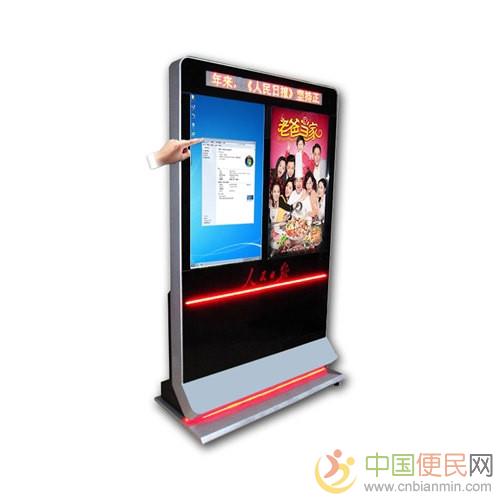 中.国.便.民.网。落地式广告机两种类型网络型:分应用终端和服务端(中央数据库)组成的多媒体信息发布系统,支持音频播放、图片、FLASH、PPT、文档浏览、实时信息、流动字幕等功能。具有针对不同的多个终端进行统一管理的特点