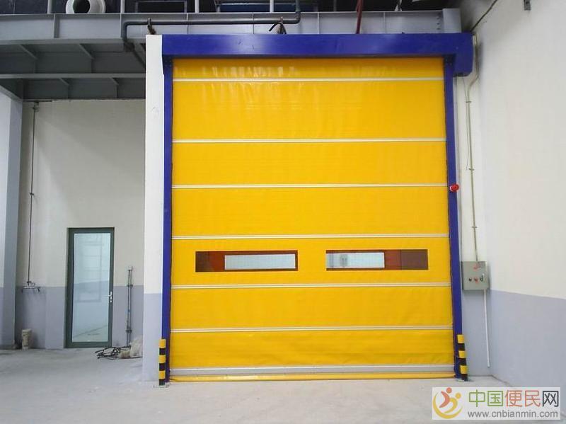 工作过程:由开门传感器提供触发信号给控制系统,控制系统根据快速卷门的当前位置发出指令给变频器,启动驱动电机使门帘快速上升,车辆行人通过后门帘自动下降,关闭通道,直到下一个开门信号再次打开。顾名思义,快速卷门升降速度非常快,不能像钢制卷闸门一样直接启动停止,一般需要变频器来控制电机的转速中 国 便 民 网。上升时越快越好,快到位时(20cm左右)需要有一个减速缓冲停止过程,以防止撞击轨道,防止夹人,降低噪音,这也是衡量快速卷门性能好坏的一个标准。